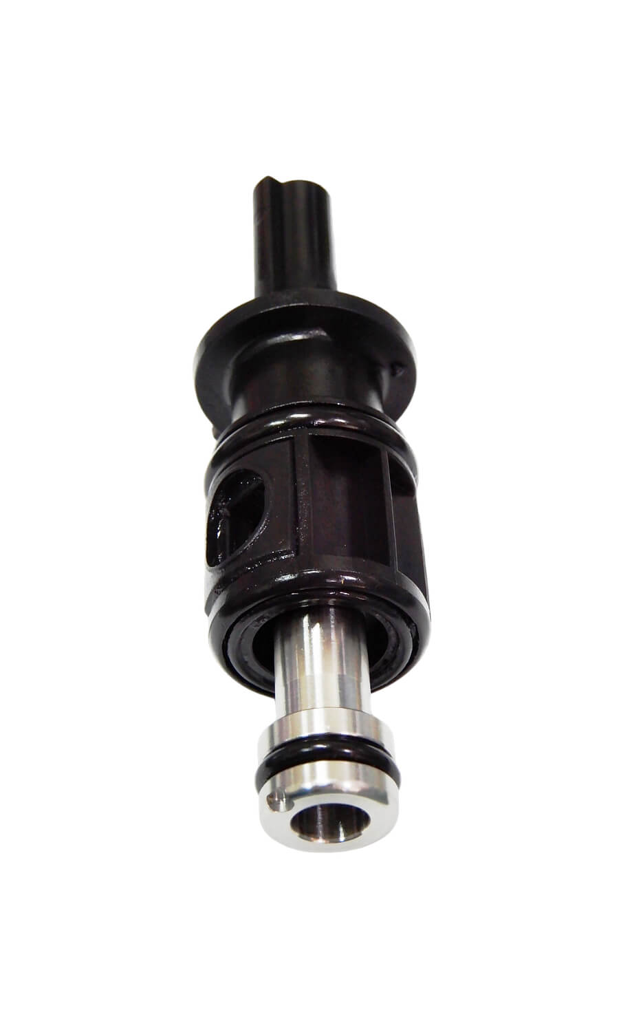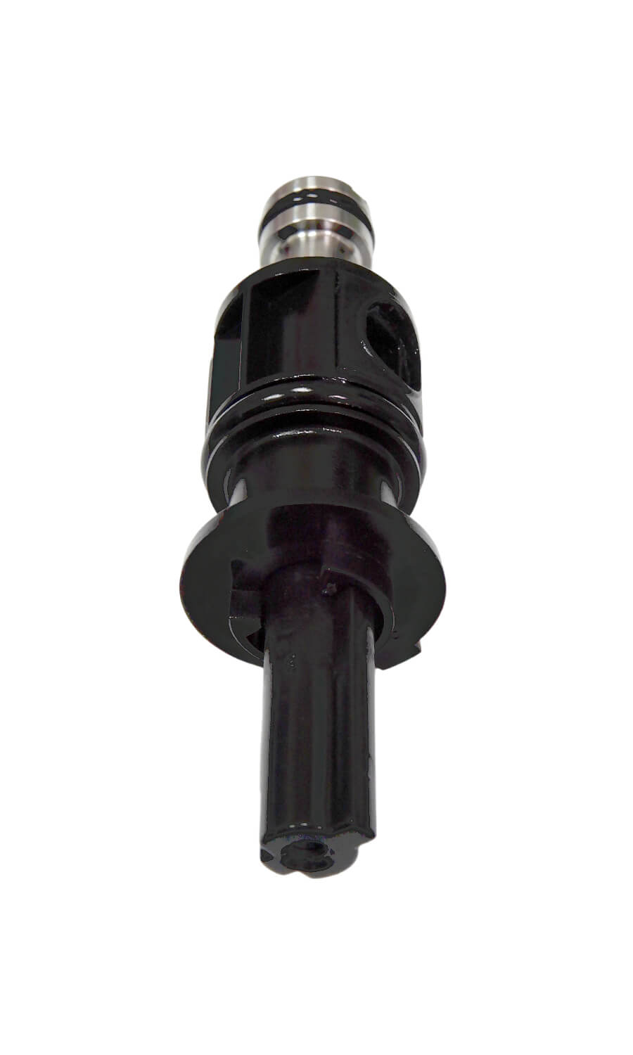The cartridge is built with a durable metal stem and a plastic casing, ensuring a long-lasting and sturdy solution for controlling water flow and temperature.
